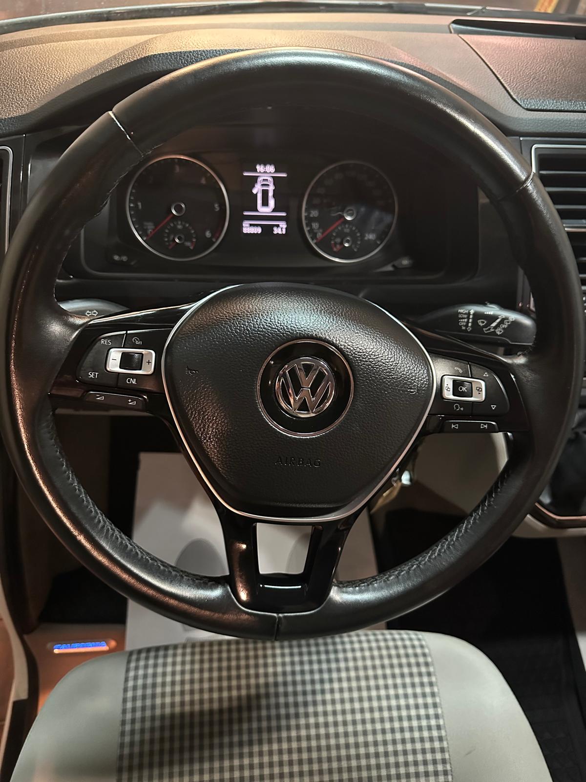 ¡¡NUEVA ENTRADA!! Volkswagen T6 California Coast (NACIONAL), cuatro plazas, 2.0 c.c de 115 c.v con cambio manual de cinco velocidades, año 2017 (noviembre), 88.809 km, en perfecto estado con todos sus mantenimientos al día… De equipamiento tiene volante multifunción, paquete de luces interior, climatizador, sensores de aparcamiento, bluetooth, llantas, multimedia, cierre centralizado, elevalunas eléctricos, bateria auxiliar, tanque de agua limpia, tanque agua sucia, cocina, nevera, salon convertible en cama, cama en parte superior (2+2), sillones delanteros giratorios, toldo, etc…